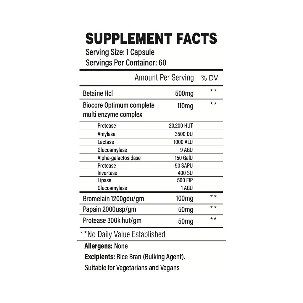 Vi har valgt at inkludere Biocore-komplekset, som repræsenterer de højeste standarder inden for fordøjelsesenzymer. Disse enzymer arbejder effektivt sammen for at sikre, at din krop får mest muligt ud af den mad og de kosttilskud, du indtager. Det er vigtigt, at alle tre makronæringsstoffer nedbrydes korrekt, så kroppen kan absorbere de næringsstoffer, den har brug for, til at understøtte restitution, muskelopbygning og generel sundhed.