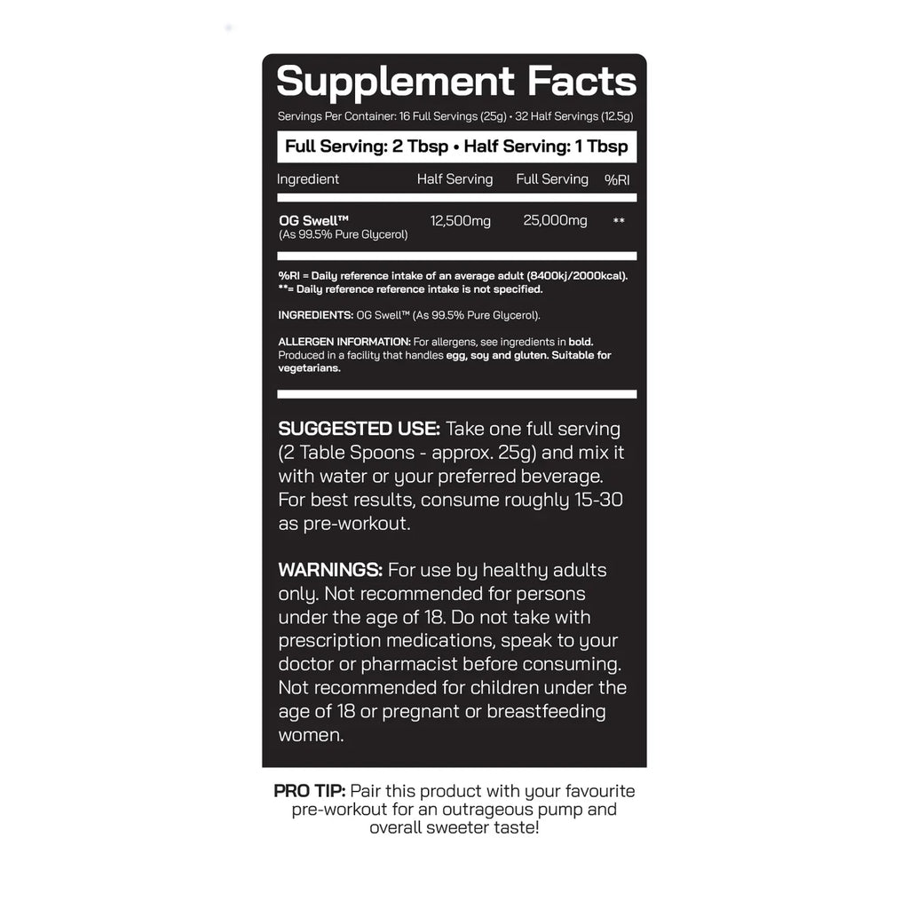 Se ikke længere end OG Swell™, en flydende glycerol, som giver de fordele, der er forbundet med glyceroltilskud uden klumper og ved effektive, undersøgte mængder.